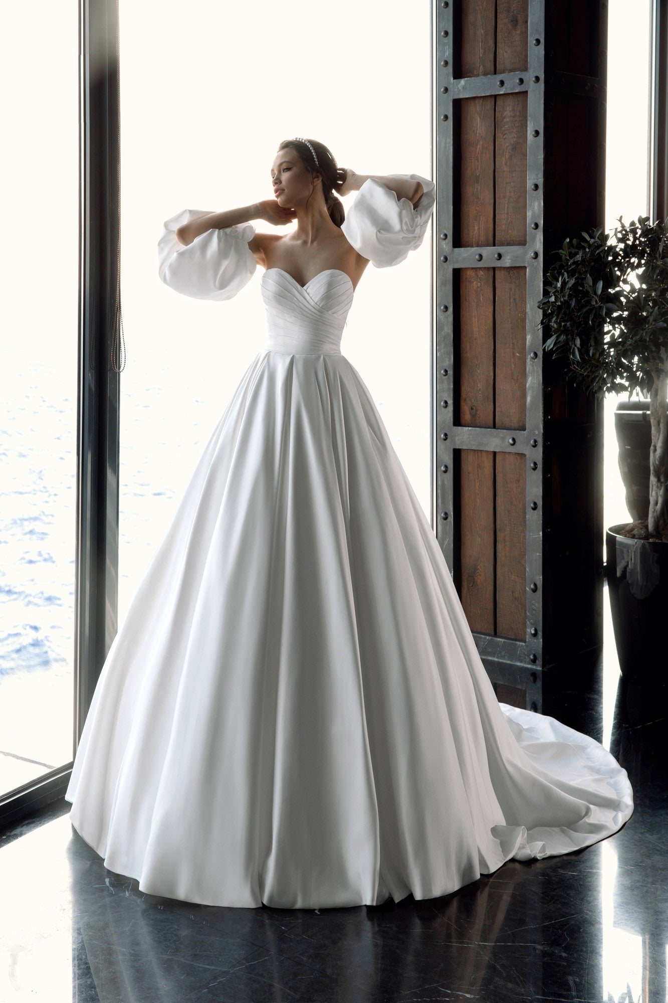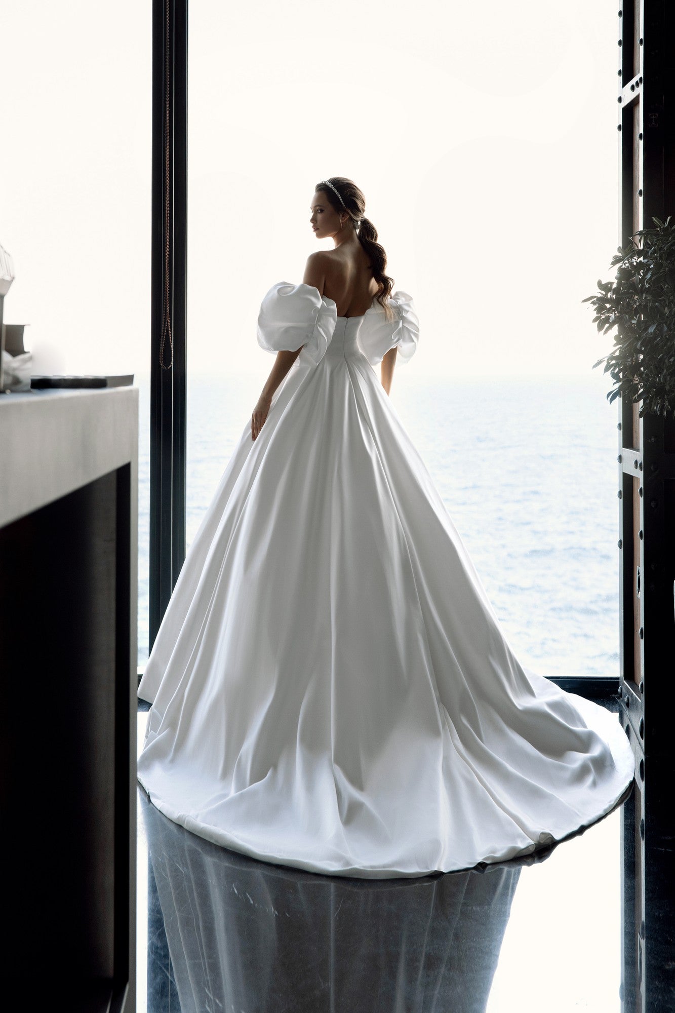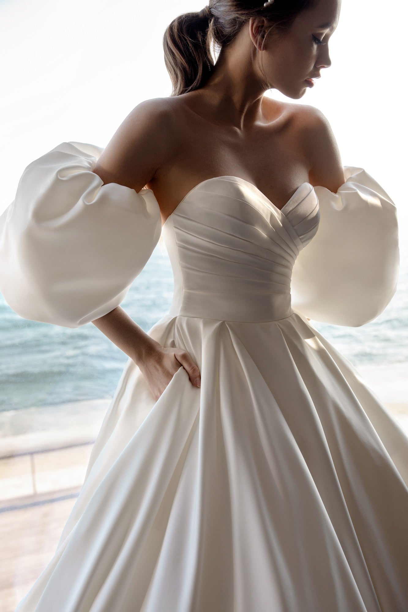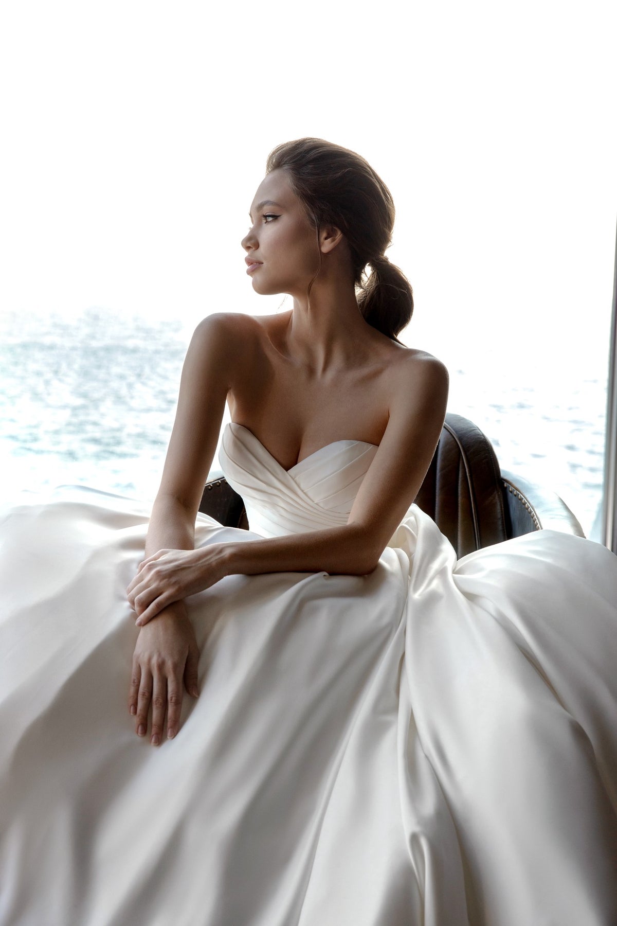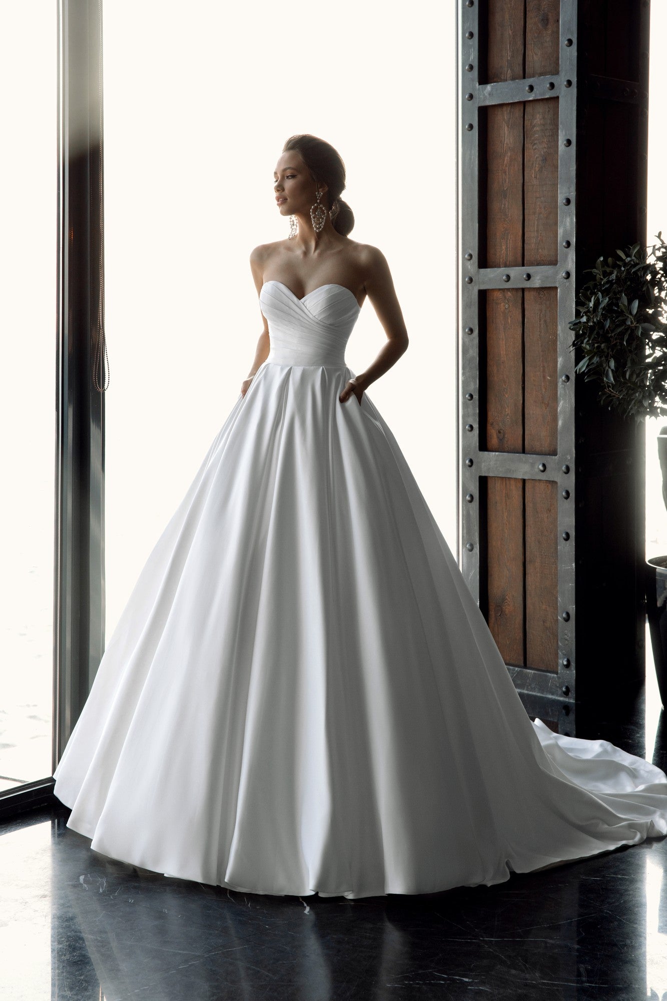 Hidden pockets lend a contemporary touch while maintaining the gown’s timeless appeal. Ellen is the ideal choice for brides who want simplicity that still feels striking, confident, and couture.