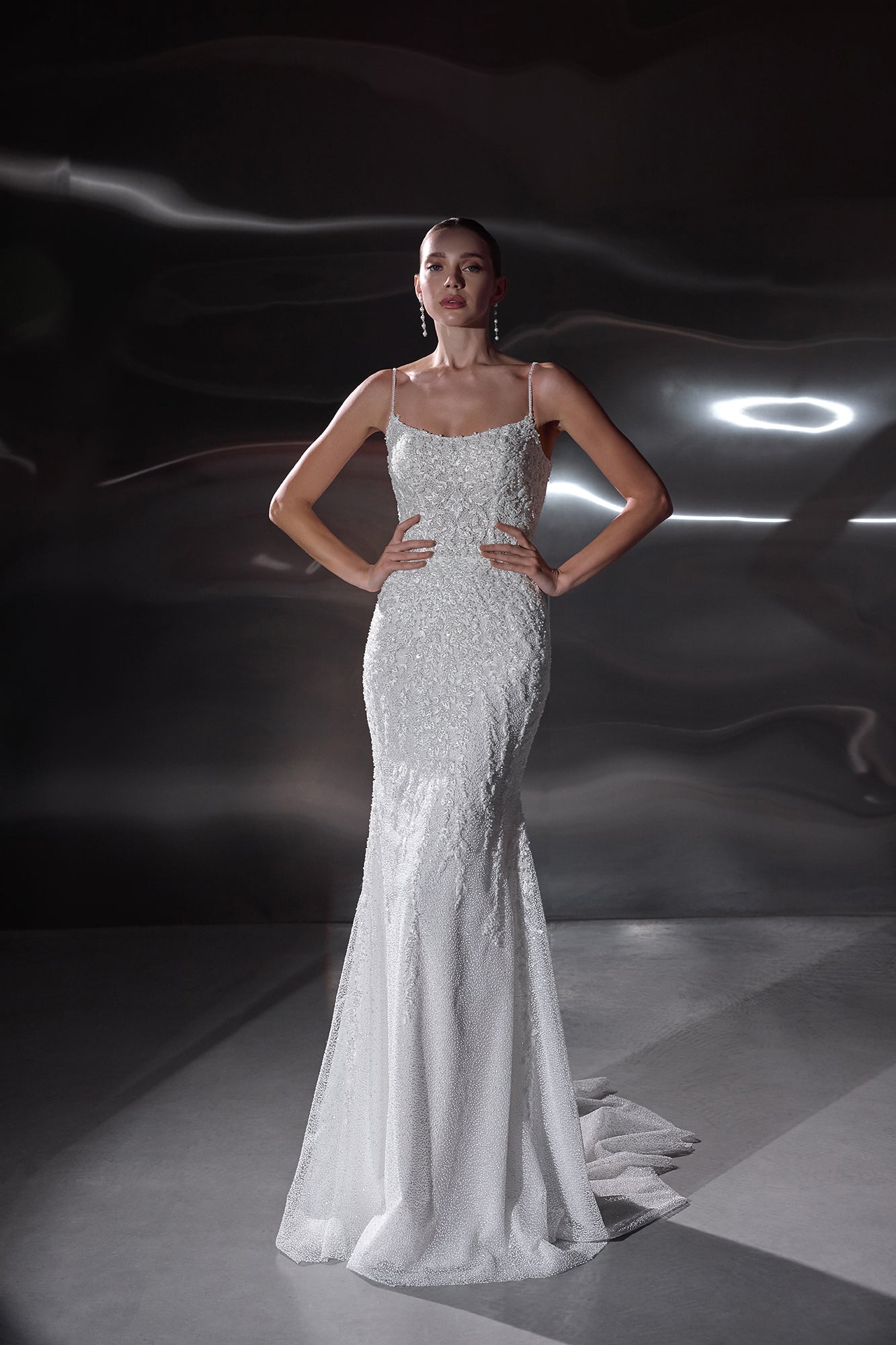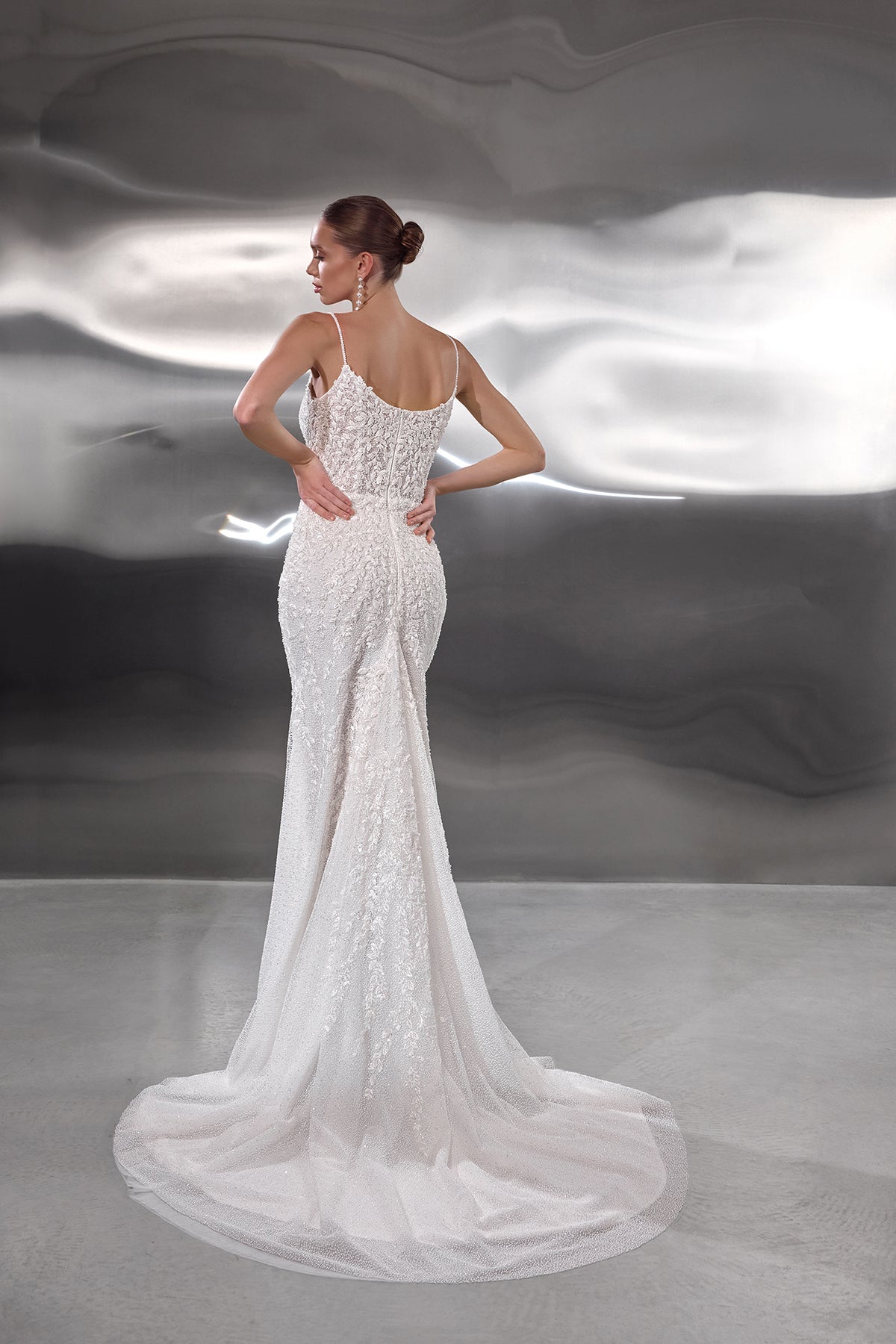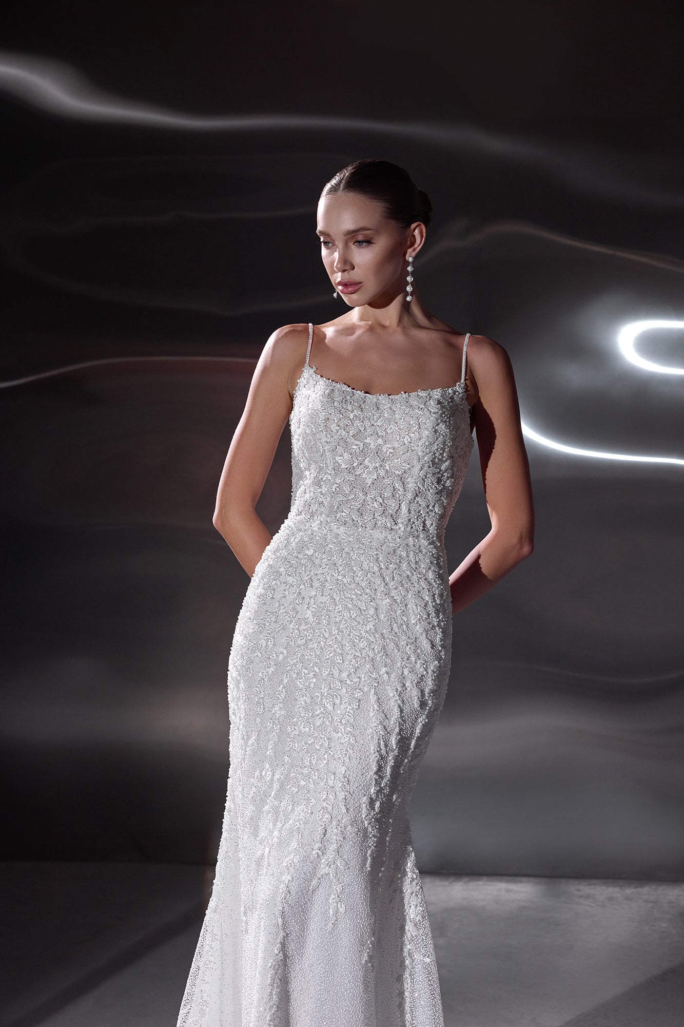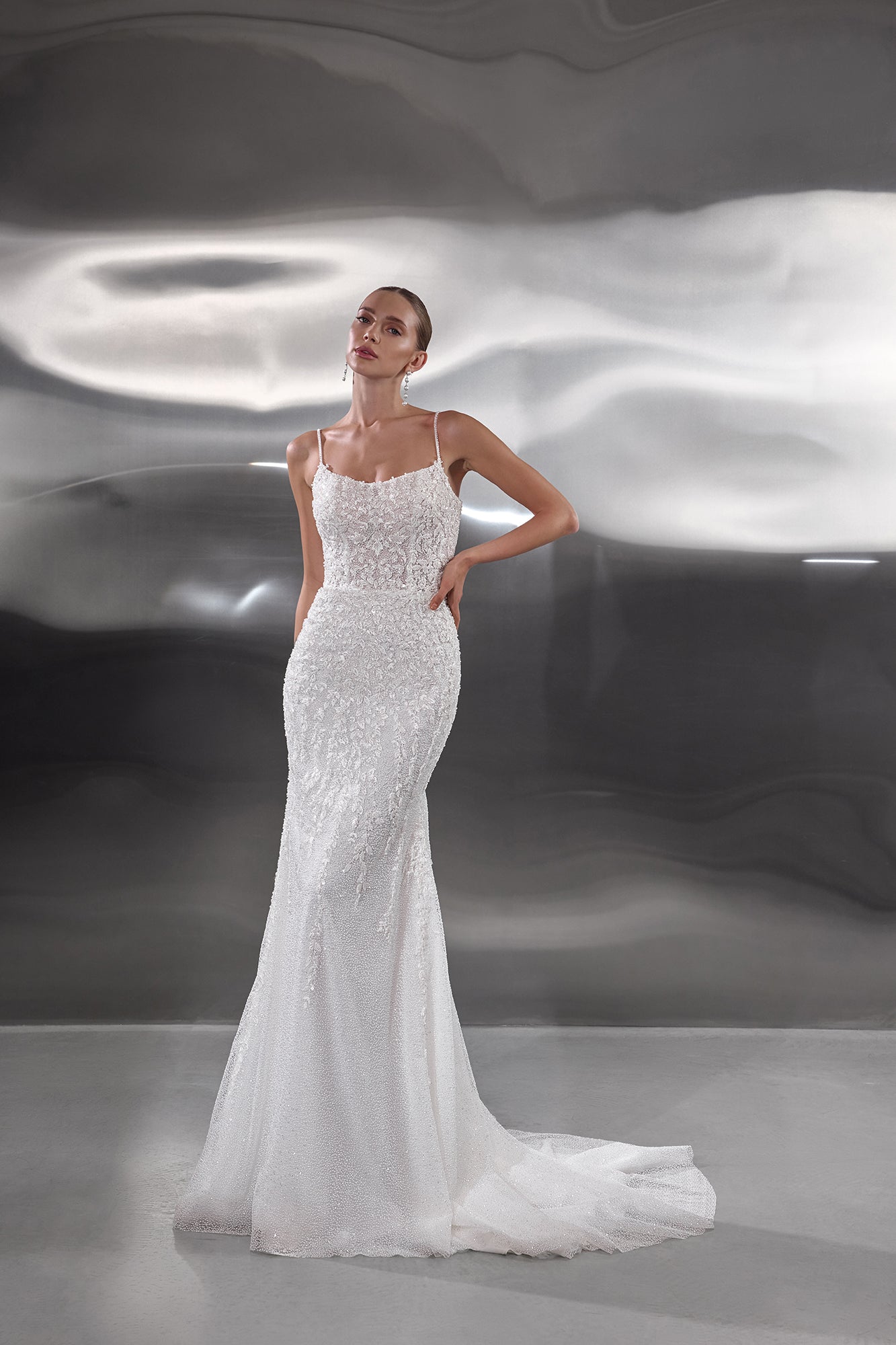 Solaris is perfect for brides seeking a lace rich mermaid gown that feels timeless, luxurious and confidently modern.